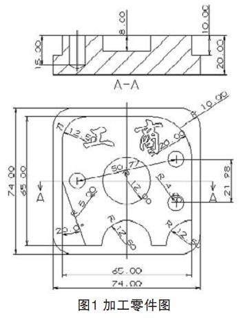 (4)“工商”字的雕刻采用1.5mm的中心鉆,轉(zhuǎn)速為1500r/min,進(jìn)給200mm/min,加工完成。