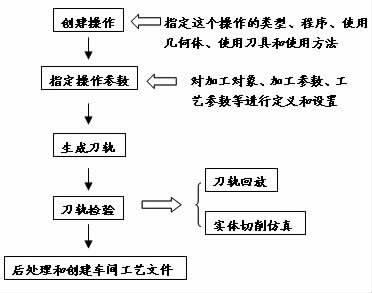 使用 UG 對汽車坐椅加強梁的凹模部分進行計算機輔助加這一過程與前面 CAD 部分有機結(jié)合, 是 CAD/CAM系統(tǒng)的關(guān)環(huán)節(jié)。 利用 UG進行計算機輔助加工可以按圖 8 的流程進行。