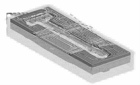 下面是其中型芯粗加工和外分型面精加工工序的走刀路徑放。