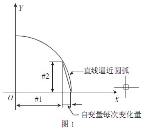 解決方案 1:根據(jù)圓的標(biāo)準(zhǔn)方程 X2+Y2=R 2,上述方程中,X和Y之間存在一定的數(shù)學(xué)關(guān)系,所以我們在數(shù)控程序中可以把其中一個設(shè)為自變量#1,另外一個設(shè)為應(yīng)變量 #2,用含 #1 的表達(dá)式表達(dá)出 #2,隨著 #1 的變化, #2 隨之變化,這樣就產(chǎn)生了無數(shù)個點的坐標(biāo)(#1, #2),然后把這無數(shù)個點用直線指令 G01 逼近即為圓弧輪廓,如圖 1