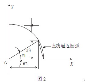 解決方案 2:根據(jù)圓的參數(shù)方程X=acos0,Y=bsin0(R是常量,為圓的半徑)上述方程中X和Y均與其中一個角度0存在一定關(guān)系,在數(shù)控程序中可以把0作為一個自變量 #1,X和Y則相應(yīng)設(shè)為應(yīng)變量 #2和#3,用含#1的關(guān)系式表達(dá)出#2和#3,這樣就產(chǎn)生了無數(shù)個點的坐標(biāo)(#2, #3),然后用無數(shù)個點用直線指令G01 逼近即為圓弧輪廓,如圖 2