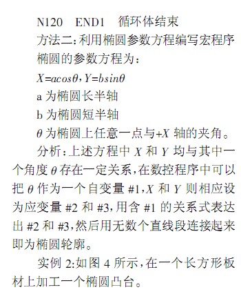 上述幾種方法共同的特點是橢圓度較好,形狀逼真,對于不同精度要求時,可適當(dāng)改變遞增量,遇到加工余量較大時,可加上刀具半徑補(bǔ)償,易于理解和掌握 上述編程適用于 FANUC 系統(tǒng),對于華中系統(tǒng),需把角度轉(zhuǎn)化為弧度