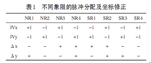 對不同象限坐標(biāo)修正見表1。