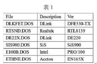 下面列出一些 DOS 客戶端網(wǎng)卡安裝常用的 NDIS 網(wǎng)絡卡驅動程序文件名,如表 1所示