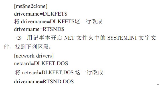 (3 ) 機器名 共享名 工作組等參數(shù)設置不一致 此時用戶可以 EDIT 命令手動編輯 c:\net 文件夾內的 PROTOCOL.INI 和SYSTEM.INI,快速修改相關參數(shù)