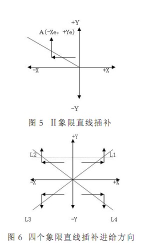 與前面進行比較后發現 當被插補直線處于不同象限時 其計算公式及處理過程完全一樣 僅僅是進給方向不同而已 進一步可總結出 L1 L2 L3 L4 的進給方向如圖 6 和表 1 所示