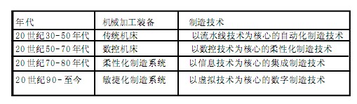 從表1 列出的各個時期的機床技術與制造技術可以看到,機械加工裝備對促進制造技術發展的緊密關系和重要支撐作用。