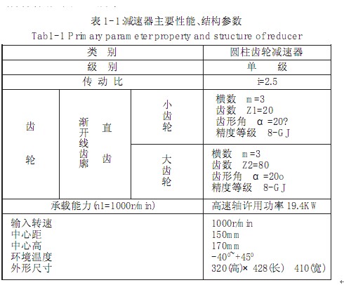 本項(xiàng)目以一級(jí)圓柱齒輪減速器作為研究對(duì)象,根據(jù)文獻(xiàn)[1]通過(guò)運(yùn)動(dòng)分析 力學(xué)分析等,計(jì)算得出的結(jié)構(gòu)性能參數(shù)列入表 1- 1,其結(jié)構(gòu)簡(jiǎn)圖如圖1- 1所示