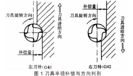 G40為取消刀具半徑補償 通常 刀具半徑左補償 右補償方向判別方法為 在補償平面內(nèi) 沿著刀具速度方向看 刀具在輪廓左邊為左補償沿著刀具進給方向看 刀具在輪廓的右邊為右補償 如圖1所示