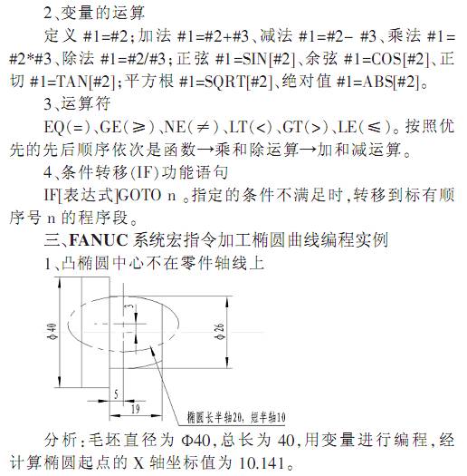 以上介紹了橢圓在實(shí)際加工中的編程方法 其實(shí)在用宏程序編制橢圓程序時(shí) 首先能夠選對(duì)變量和寫出正確的方程通過方程計(jì)算出另一變量 其次能正確確定工件原點(diǎn)與橢圓中心之間的關(guān)系 再編出正確的橢圓宏程序 實(shí)踐工作中遇到具體的加工實(shí)例要具體分析 不能硬套固定模式 要多方面綜合考慮 合理運(yùn)用宏指令進(jìn)行編程