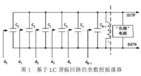 我們可以得到 DCO 的電路結構圖如圖 1 所示 圖中的 負阻電路是負責補充維持 LC 回路振蕩所需的能量 通常由連接成正反饋形式的有源放大器實現