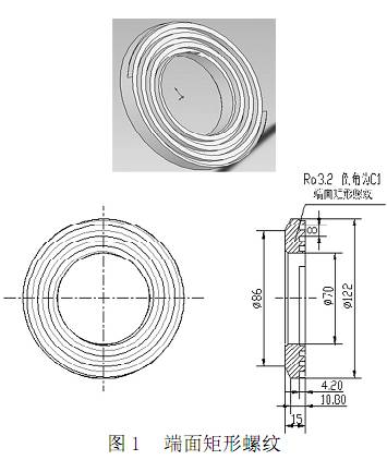 由圖1 可看出,從零件尺寸精度上看,車削端面矩形螺紋的粗糙度要求較高,其他部分要求不高。所以切削用量選擇要適當(dāng),特別對刀具要求較高。