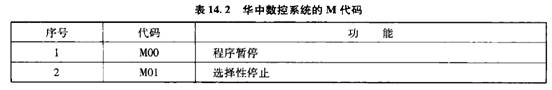 只是不同的系統功能略有差別。以850型數控加工中心為例,介紹CNC加工中心程序編制的基本方法。該加工中心配備的是華中世紀星HNC-21 M數控系統,該系統常用的一些G指令可參考第13章數控銑加工中的c指令,M代碼如表14. 2所示。