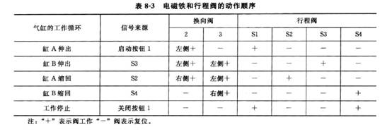 <3)系統(tǒng)電磁鐵和行程閥的動(dòng)作順序見表8-3
