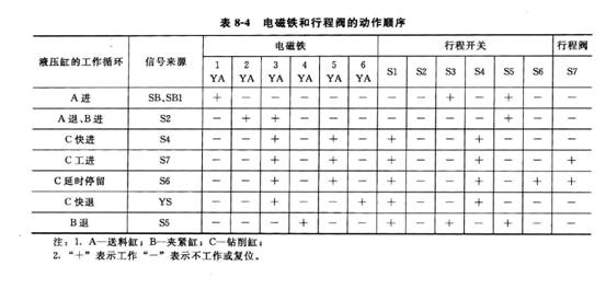 (3)氣動鉆床系統電磁鐵和行程閥的動作順序見表8_4 0