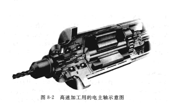 8—3所示的電主軸布局是將電機的轉子直接作為機床的主軸,主軸單元的殼體即是電機座,