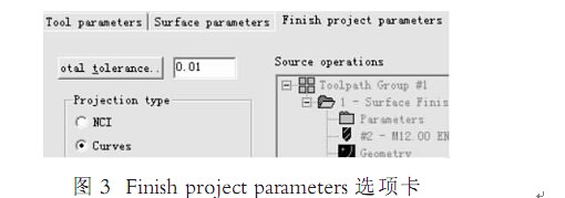 第五步 選擇曲面投影精加工 Finish project parameters 選項(xiàng)卡 輸入相關(guān)參數(shù)如圖 3