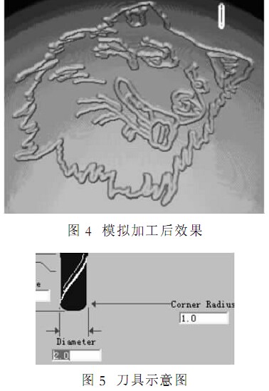 另外 假設(shè)客戶要求刻花凹槽截面非圓弧狀 而是方形 梯形等 這時(shí)就必須用平刀或成形刀加工 而在 Mastercam 軟件中用平刀等編程 Stock toleave(即余量 不能給負(fù)數(shù) 我們便可通過(guò) 騙刀 來(lái)實(shí)現(xiàn) 即 Mastercam 軟件編程用球刀 而數(shù)控銑床裝平刀或其它合適成形刀具