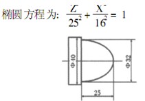 任務 2 :編寫下圖不完整半橢圓的加工程序, 毛 坯為 5 40 @ 100的 45鋼,其余部分的程序省略。